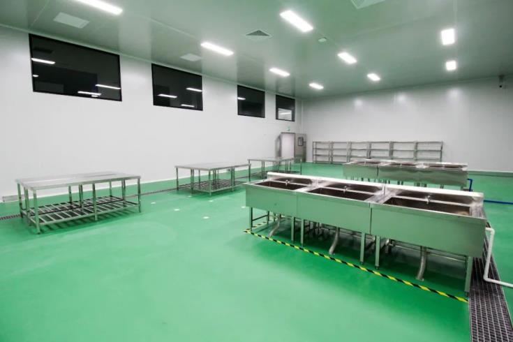 公司采用工业化流水线作业,通过将半成品预冷、包装、锁鲜、冷藏储存等措施,将个食堂的初加工端集中,各食堂的需求品种、需求量集中加工,实现资源共享,进行综合互补,为客户真正实现多样化产品供应,从而改变产品单一化的局面。