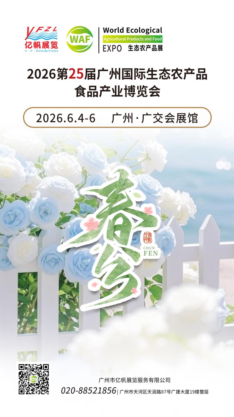 第25届广州国际生态农产品食品产业博览会(WAF China)将于2026年6月4-6日在广州广交会展馆举行,诚挚邀请您来参展/参观!